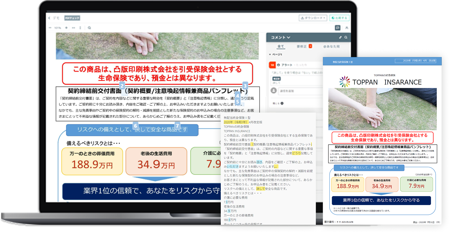 TOPPANの長年のノウハウを元に開発された独自のチェックエンジンを搭載。人の目では見逃しがちな細かなミスも、徹底的に検出します。