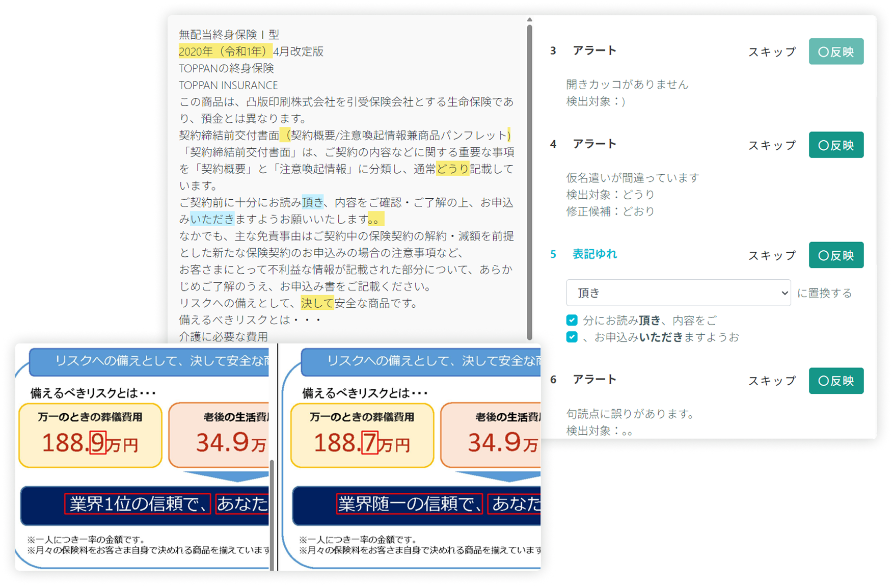 単なる誤字脱字だけでなく、業界や貴社特有のルールまで取り込んでチェックが可能。ヒューマンエラーを防ぎ、品質を安定させます。