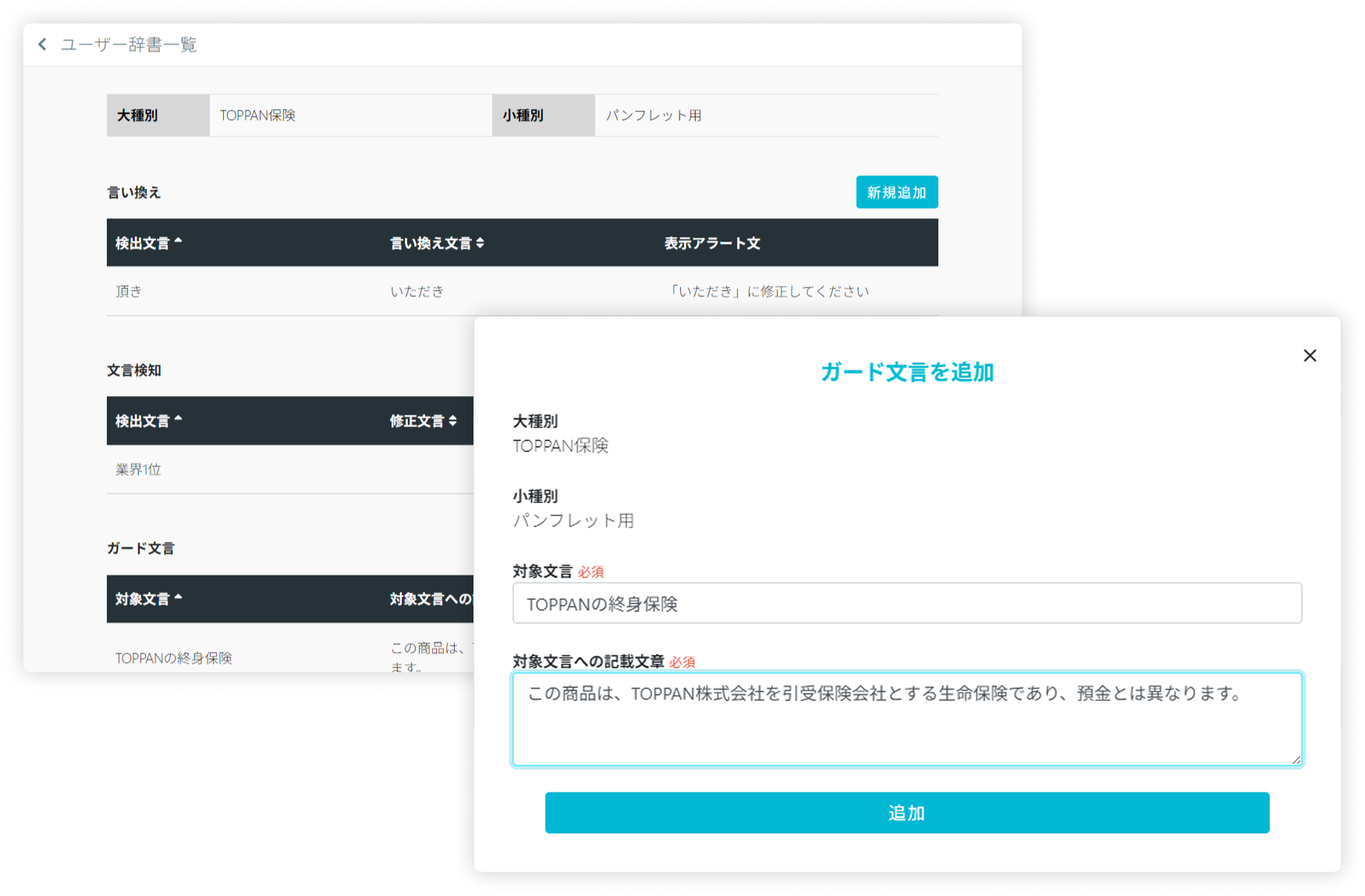 貴社独自の表記ルールや禁止語句を辞書として登録可能。ベテランのノウハウを「会社の資産」として蓄積し、属人化を解消します。