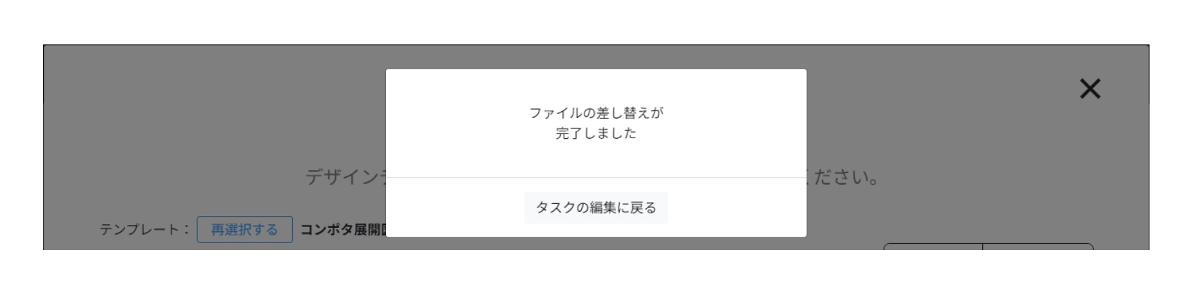 照合箇所の選択が終わり「完了」ボタンをクリックするとファイル差し替え完了のダイアログが表示されます。